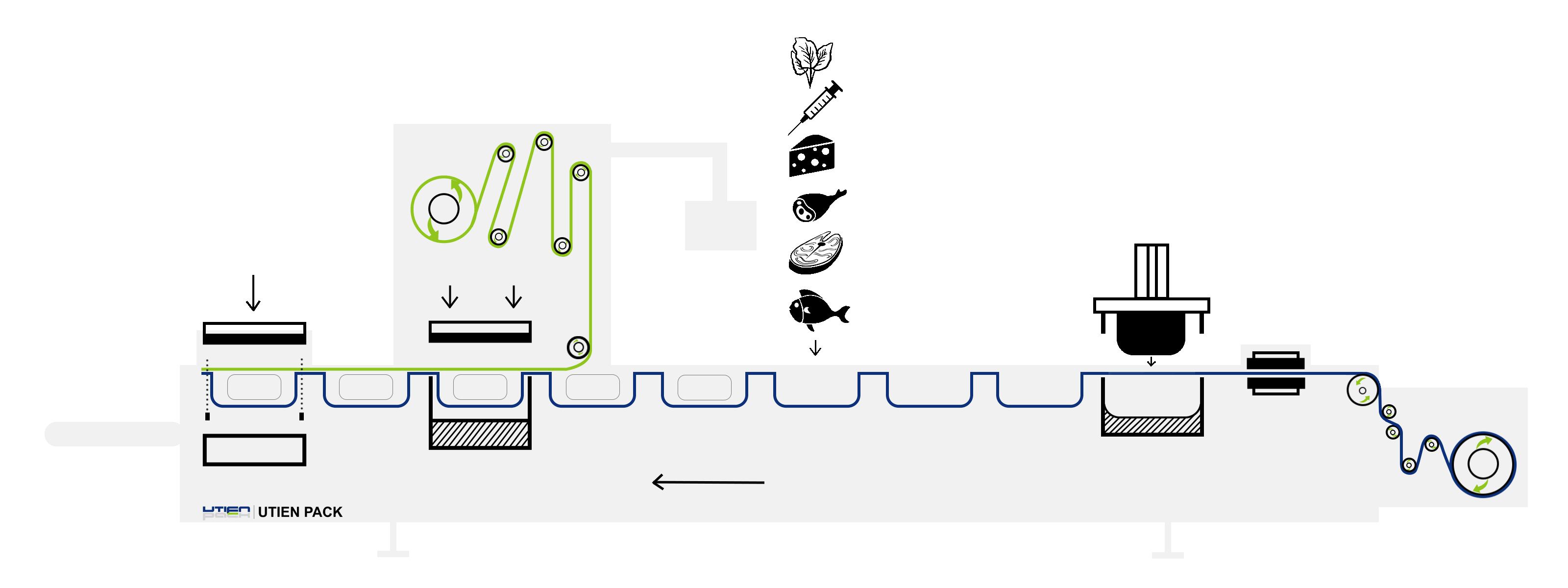RC-R系列软膜全自动热成型真空包装机通过加热软性可热塑性底膜,将其成型为所需包装形状,再完成产品填充、封口和切割,实现全自动连续生产。